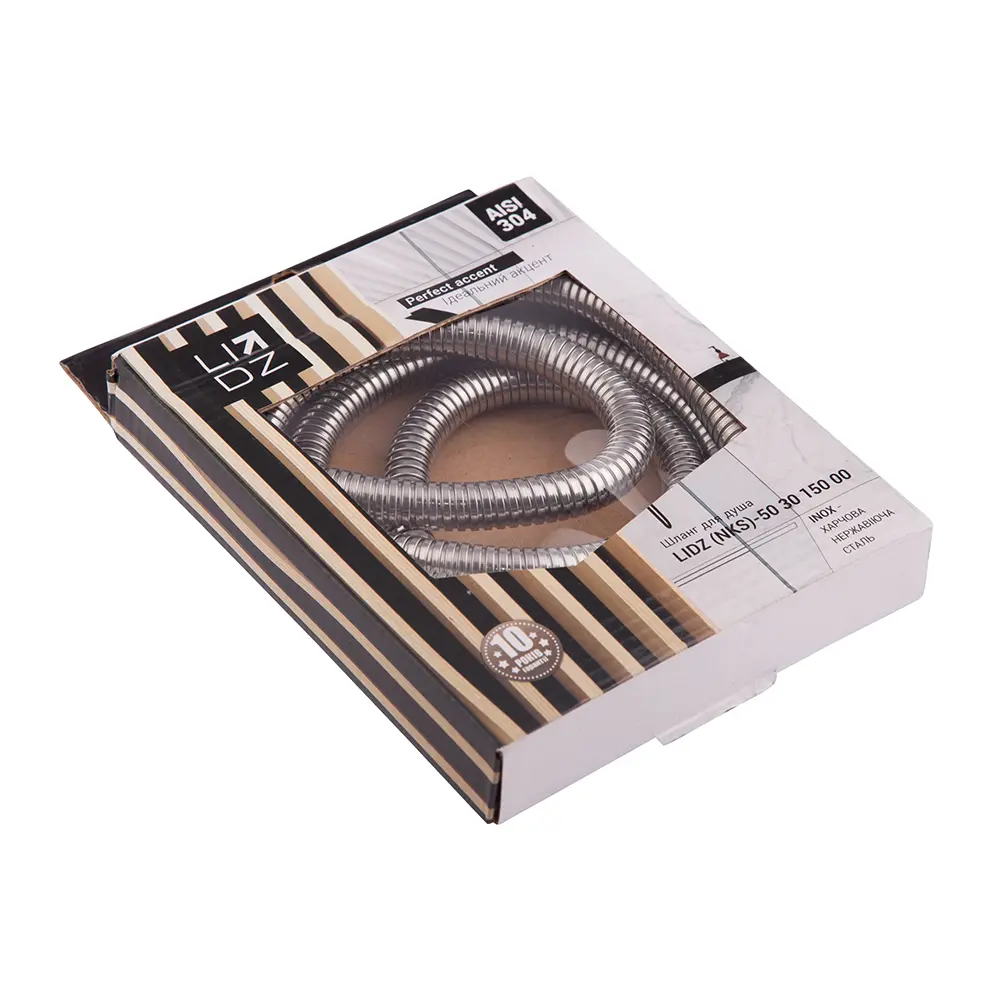 Шланг для душу Lidz (NKS) 50 30 150 00 виконаний з високоякісної нержавіючої сталі. Виріб має довжину 200 см, тому ним зручно користуватися. Універсальне підключення підійде для всіх душових лійок завдяки діаметру з‘єднання 1/2 дюйми. Установка не вимагає особливих зусиль, підведення з внутрішнім різьбленням.