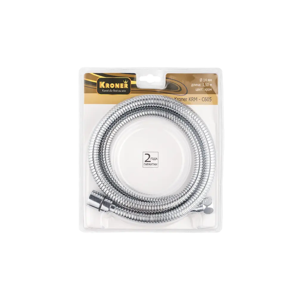 Шланг для душа от Kroner изготовлен из нейлона в металлической оплетке. Шланг легок в установке, не извращается и не перегибается, после длительного применения не перетирается.