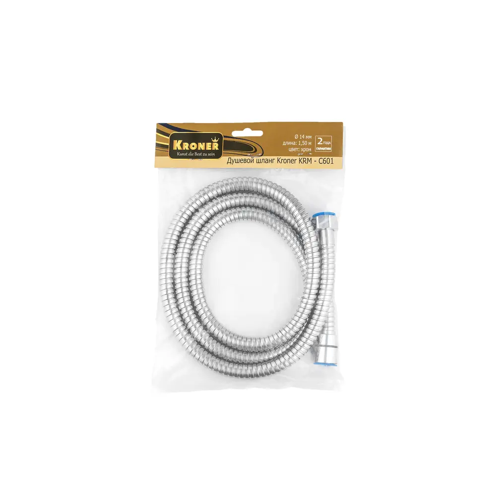 Шланг для душа от Kroner изготовлен из нейлона в металлической оплетке. Шланг легок в установке, не извращается и не перегибается, после длительного применения не перетирается.