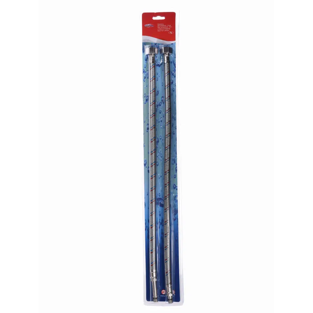 Застосовуються для підключення як і холодного, так і гарячого водопостачання. Червоні і сині нитки, вплетені в оплетку, свідчать про можливість використання гнучкого шланга для гарячої та холодної води.