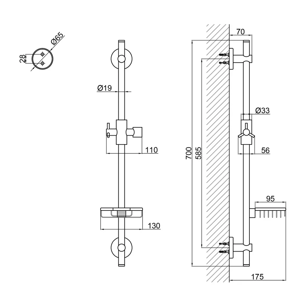 Штанга для душу Qtap 003 виготовлена з латуні. Завдяки хромованому покриттю має гарний зовнішній вигляд. Встановити стійку можна класичним способом на стіну за допомогою розпірників. Для зручності в комплекті передбачені мильниця та кронштейн для ручного душу з можливістю регулювання лійки за висотою. Така модель стійки відмінно доповнить сучасний дизайн ванної кімнати.