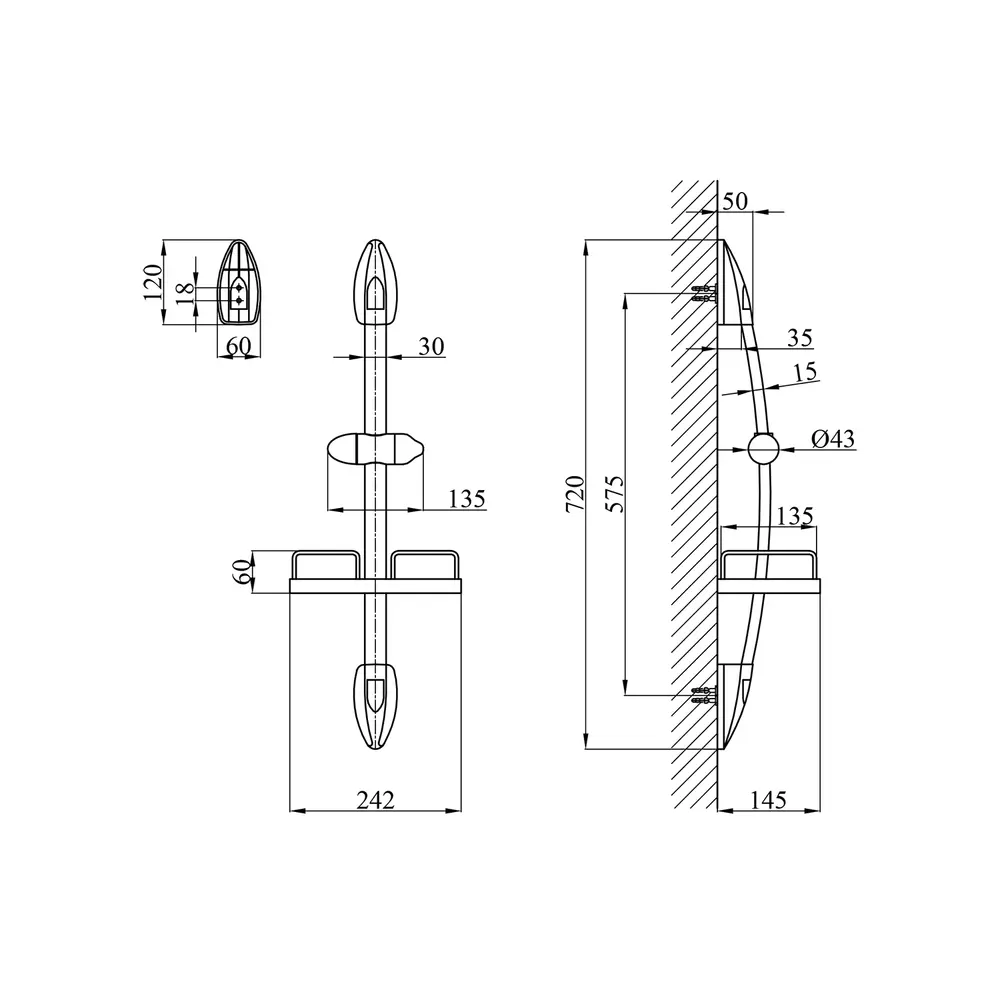 Душова стійка, кронштейн для ручного душа, полиця, кріплення.