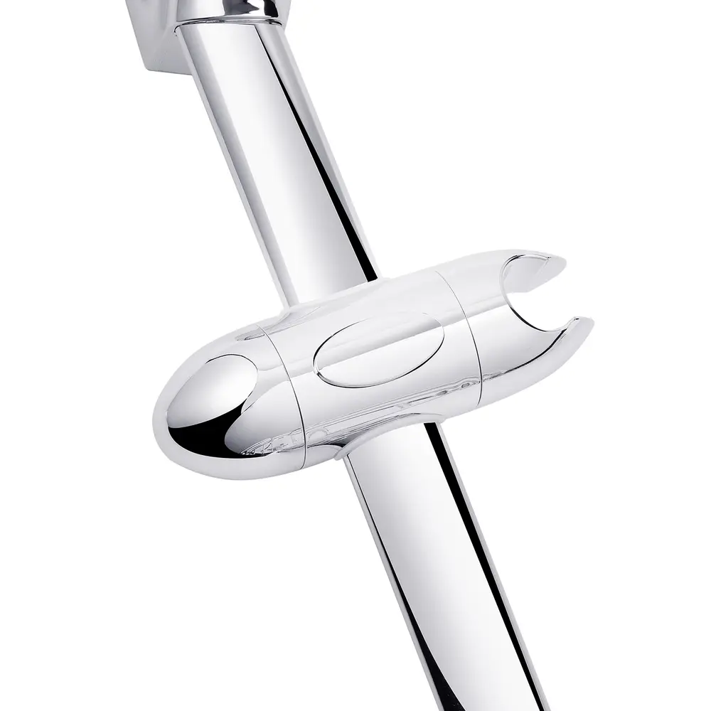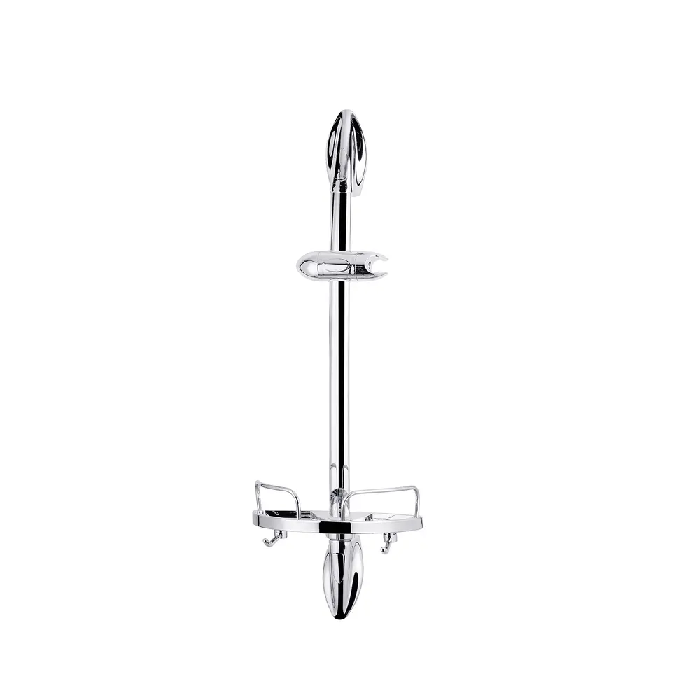 Штанга для душу від Kroner виготовлена з якісних матеріалів. Завдяки хромованому покриттю має гарний зовнішній вигляд. Виріб кріпиться на стіну за допомогою кріплень, які входять в комплектацію. Для зручності в комплекті передбачений кронштейн для ручного душу з можливістю регулювання лійки по висоті і полиця. Така модель стійки відмінно доповнить сучасний дизайн ванної кімнати.