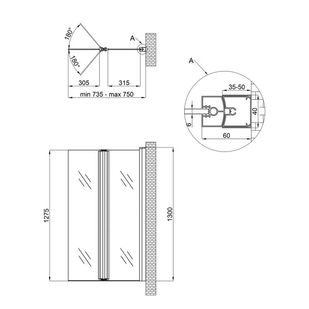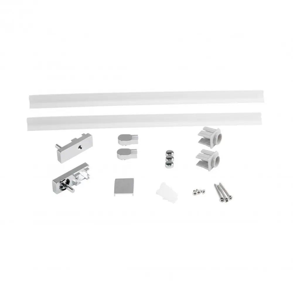 Скло, пристінний профіль, набір гвинтів, регулюючий профіль, заглушка.