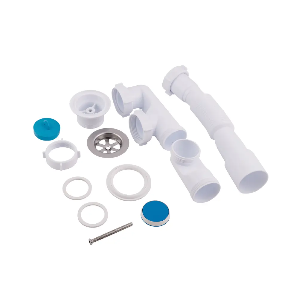 Сифон для душевого поддона Lidz (WHI) 60 04 P001 00 изготовлен из пластика белого цвета, имеет гладкую внутреннюю поверхность, благодаря чему уменьшается накопление грязи на стенах. Это позволяет чистить сифон не так часто. В комплектацию входит удобная пробка, которая может перекрывать сливное отверстие. Наличие гофрированной трубы дает возможность изменять ее длину и угол во время установки. В случае необходимости сифон можно очистить через отверстие-ревизию.