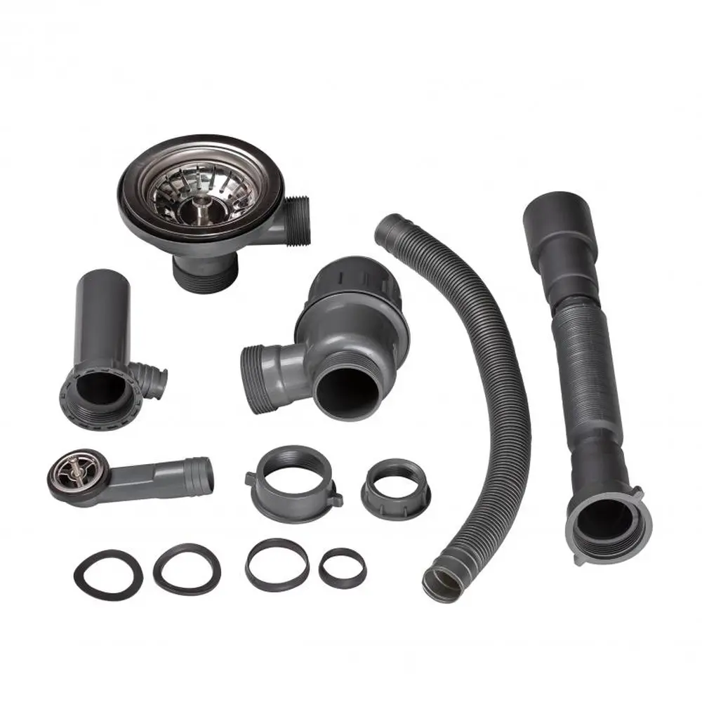 Сифон для кухонної гранітної мийки Romzha RO-01 (G) виготовлений із пластику сірого кольору у вигляді склянки - колби з металевими гратками і гофрованих труб. Резервуар сифона відкручується для очищення. Гофрований вихід дає можливість змінювати довжину і кут труби. Завдяки комунікації для переливу можна уникнути переповнення кухонної раковини водою. Характеристики Тип сифона: Колбовий (пляшковий) Вага брутто (кг): 0,45 Вага нетто (кг): 0,45 Вид гідрозакриву: мокрий (без мембрани) Вид зливу-переливу: механічний (ручний) Габарити виробу (ВхШхГ) (мм): 350х180х110 Габарити упаковки (мм): 350х180х110 Довжина переливу (мм): 470 Довжина гофрованої труби (мм): 380 - 920 Діаметр випуску: 3 1/2" Діаметр патрубка в каналізацію (мм): 40/50 Комплектація: Сифон випуск перелив гофрована труба. Матеріал: пластик / нержавіюча сталь Призначення: для кухонної мийки з граніту Підключення до пральної машини: є