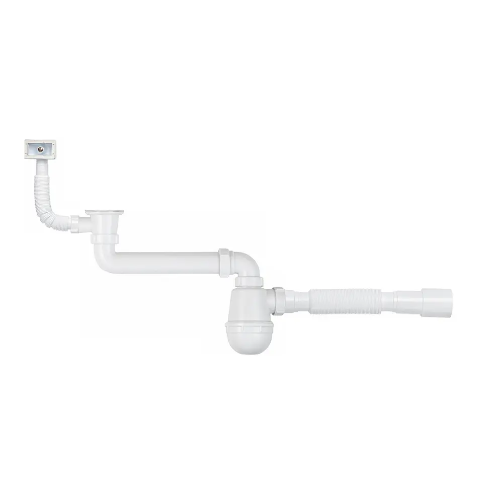 Сифон с резьбовым выпуском, с гибким прямоугольным переливом. Для подключения к канализации комплектуется гофротрубой. Прокладка прямоугольного перелива универсальна и позволяет устанавливать перелив на мойки круглой и прямоугольной формы, для этого необходимо перевернуть прокладку и вставить в посадочное место корпуса перелива нужной стороной. Сетка выпуска, винты и гайки из нержавеющей стали.