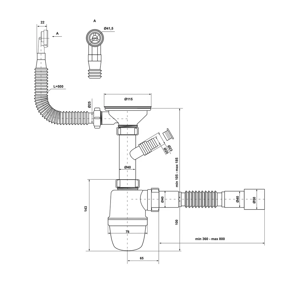 Сифон с резьбовым выпуском, с отводом для подключения стиральной машины и с гибким кргуглым переливом. Для подключения к канализации комплектуется с гофротрубой. Если отвод для стиральной машины не используется, то для его надежного закрытия используют полипропиленовую пробку идущую в комплекте.Если отвод для стиральной машины не используется, то для его надежного закрытия используют полипропиленовую пробку идущую в комплекте. Сетка выпуска, винт и гайка из нержавеющей стали