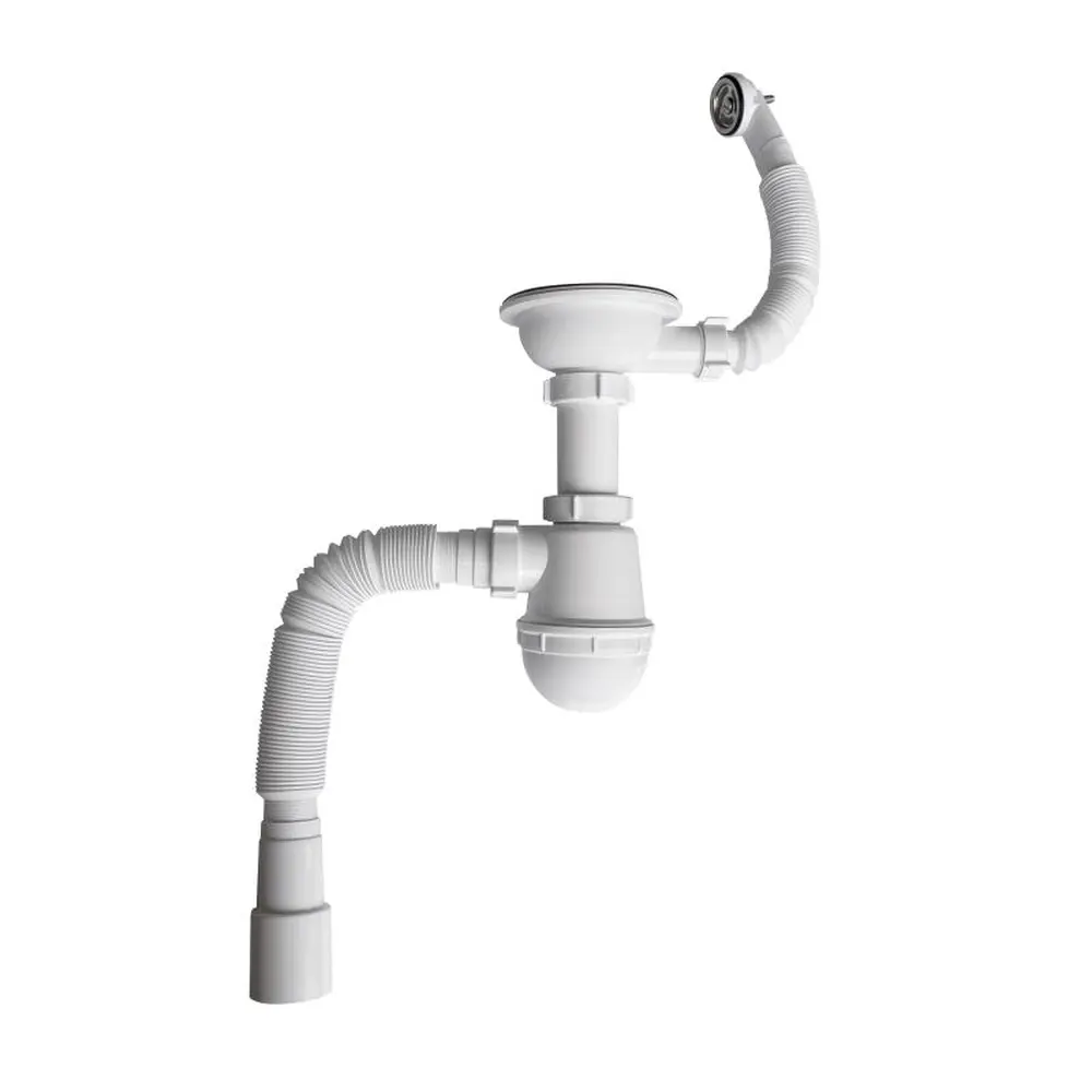 Ідеально підійшов і до мийки і до виходу труби з каналізації. Все в сборі, нічого не докуповував. Поставив і забув.
