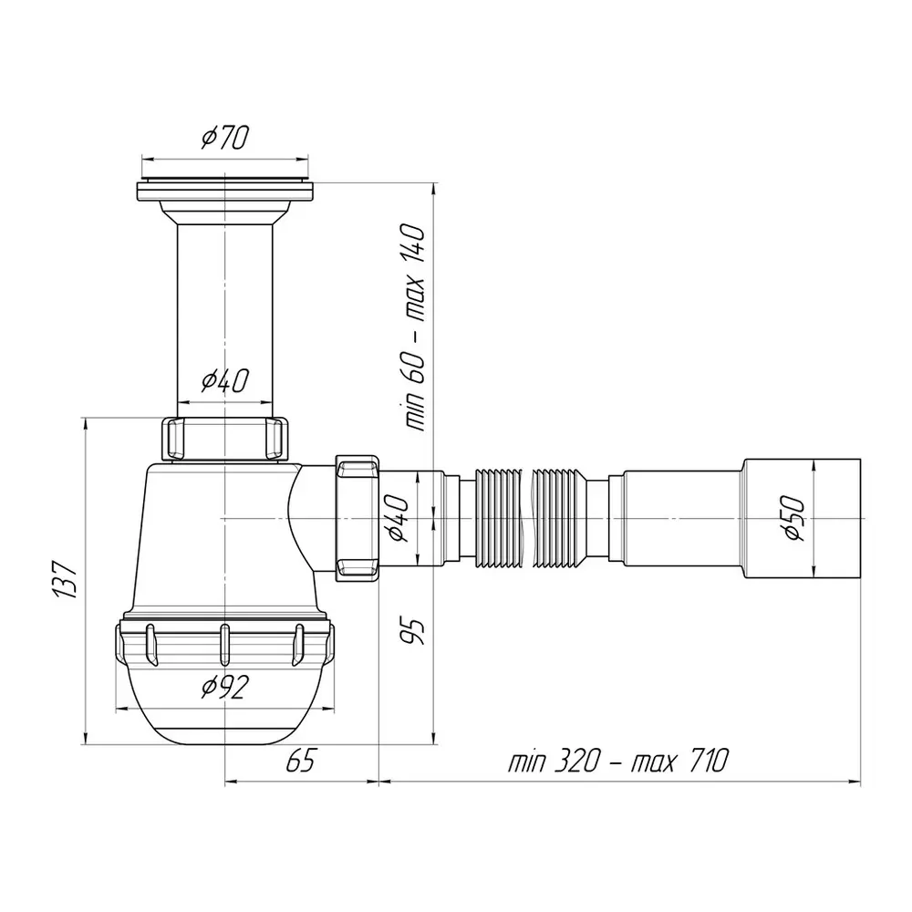 Сифон для кухонной мойки ANI Plast A0145SP15 выполнен из пластика со стаканом-колбой. Таким образом, изделие не подвергается коррозии, скопление жира и грязи на гладких внутренних стенках, не дает канализации засоряться: резервуар сифона откручивается для очистки от твердых частиц. Мокрый гидрозакрив препятствует проникновению неприятных запахов из канализации в помещение по трубам. В случае необходимости наполнить раковину водой сливное отверстие закрывается вручную пробкой.