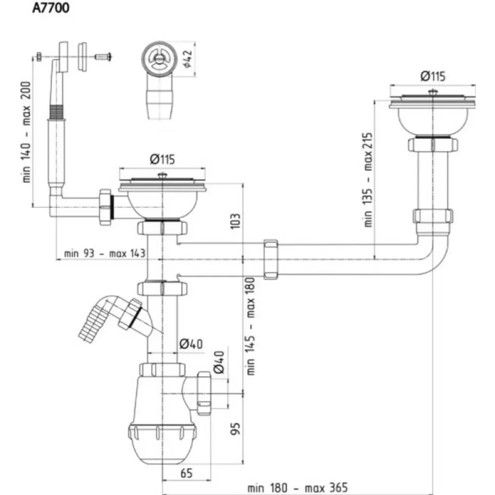 Сифон для кухонной мойки с двумя разноуровневыми чашами ANI Plast D6115S выполнен из пластика в классическом белом цвете. Благодаря гладким внутренним стенкам, изделие устойчив к образованию коррозии и налипания грязи. Наличие колбы способствует оседанию твердых частиц на ее дне и предотвращает их попадание в канализационные трубы, образует мокрый закрыл и не пропускает неприятные запахи в помещение. В случае необходимости резервуар легко снимается и очищается.