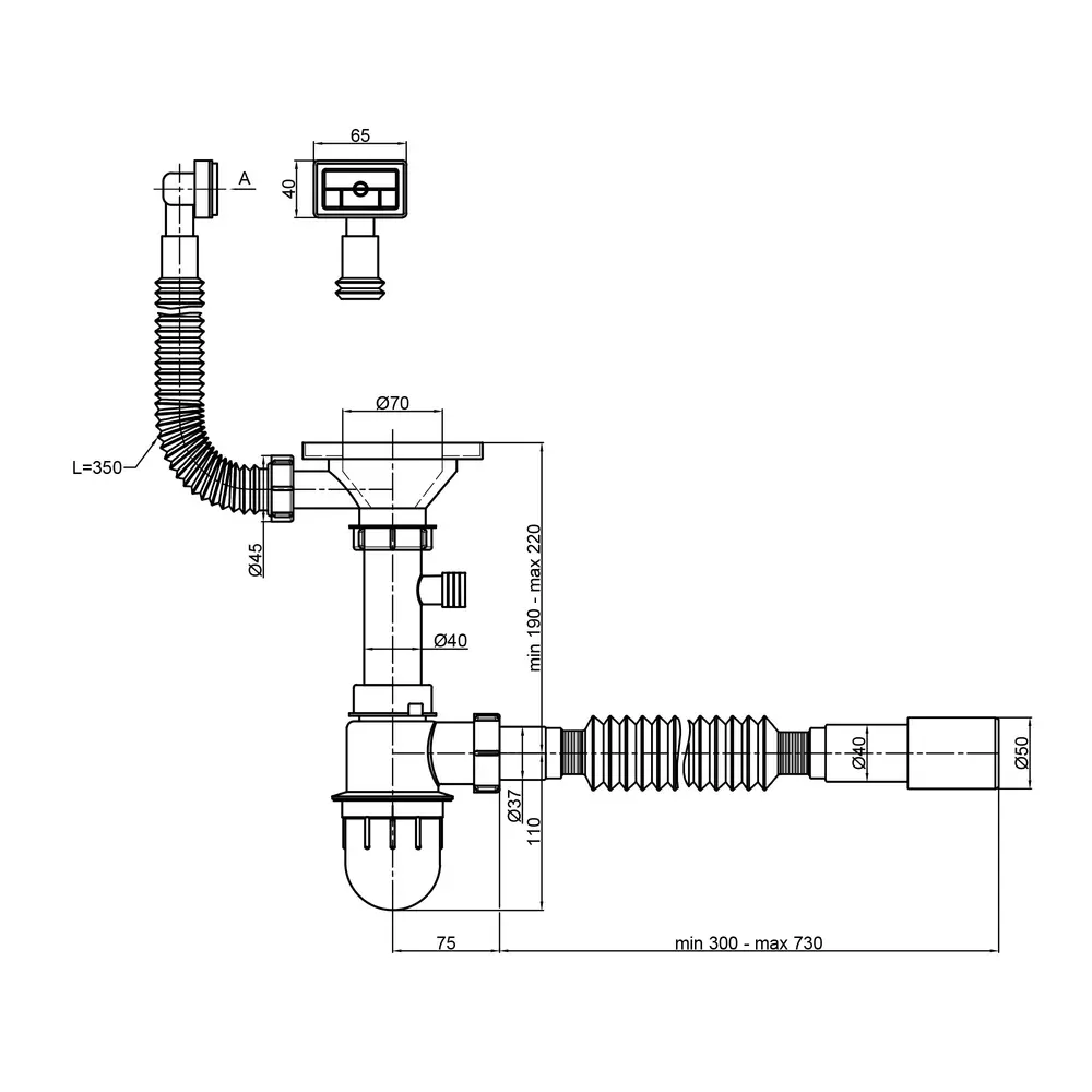 Сифон, Перелив, Випуск, Гофрована труба, Перехідна труба