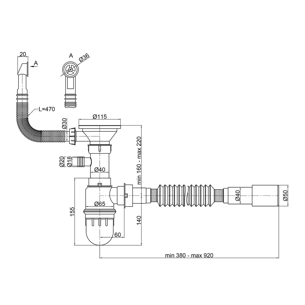 Сифон, Перелив, Випуск, Гофрована труба
