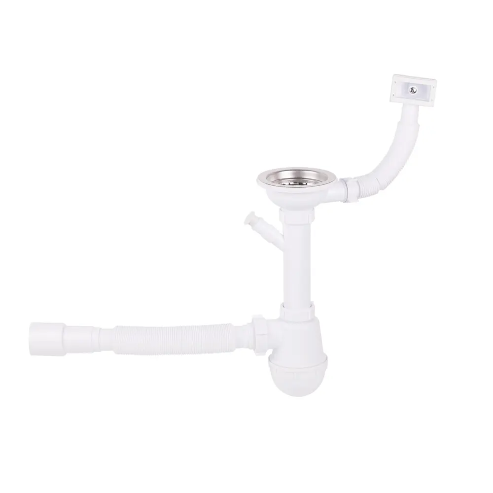 Сифон для кухонной мойки Lidz (WHI) 60 05 M002 01 изготовлен из качественного пластика белого цвета. При необходимости резервуар сифона может откручиваться для очистки. Гофрированный выход дает возможность изменять длину и угол трубы. Благодаря коммуникации для перелива можно избежать переполнения кухонной раковины водой. Мокрый гидрозакрив обеспечит надежную защиту от неприятных запахов из канализации.