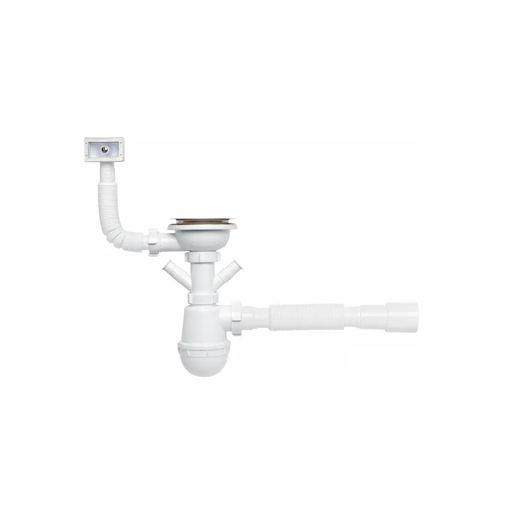 Сифон для кухонної мийки KronoPlast 3 1/2''х40 мм з різьбовим випуском, відводом для пральної/посудомийної машини, з квадратний перелив SM27030343