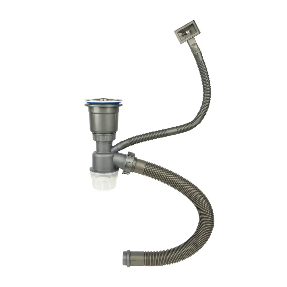 Для зручності вилучення сміття з сітки зливу, сифон оснащений спеціальною кошиком для сміття.Кошик повністю збирає всі відходи при митті посуду і легко виймається для чищення.