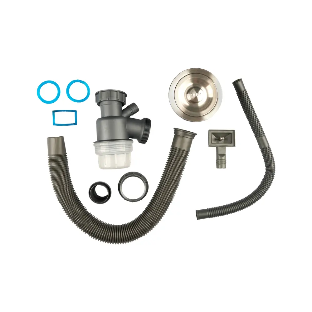 Всі металеві комплектуючі виконані з нержавіючої сталі 304 марки.Такай сифон для кухонного миття більш стійкий до подряпин і появи корозії. Поєднання в складі 18% хрому і 10% нікелю дозволяє вірно служити десятиліттями!