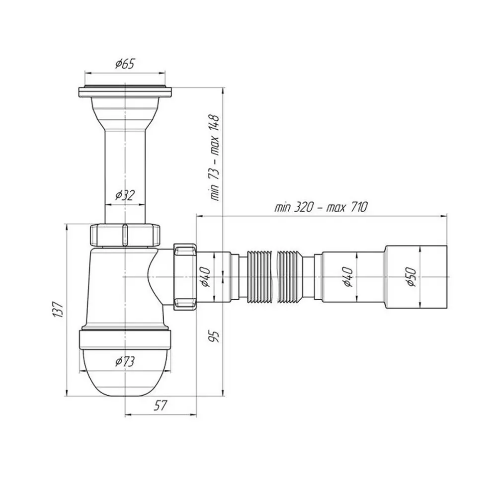Сифон, литий випуск, гофротруба, нержавіюча сітка