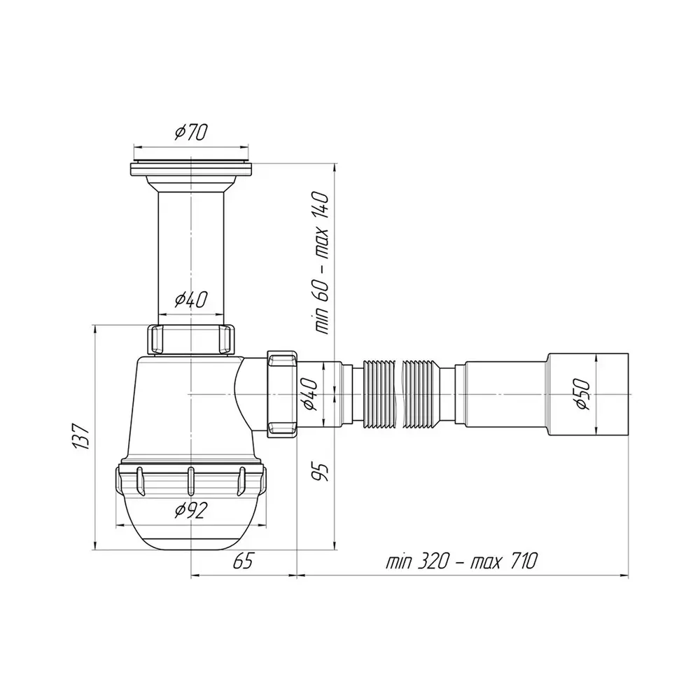 Сифон, литий випуск, гофротруба, нержавіюча сітка