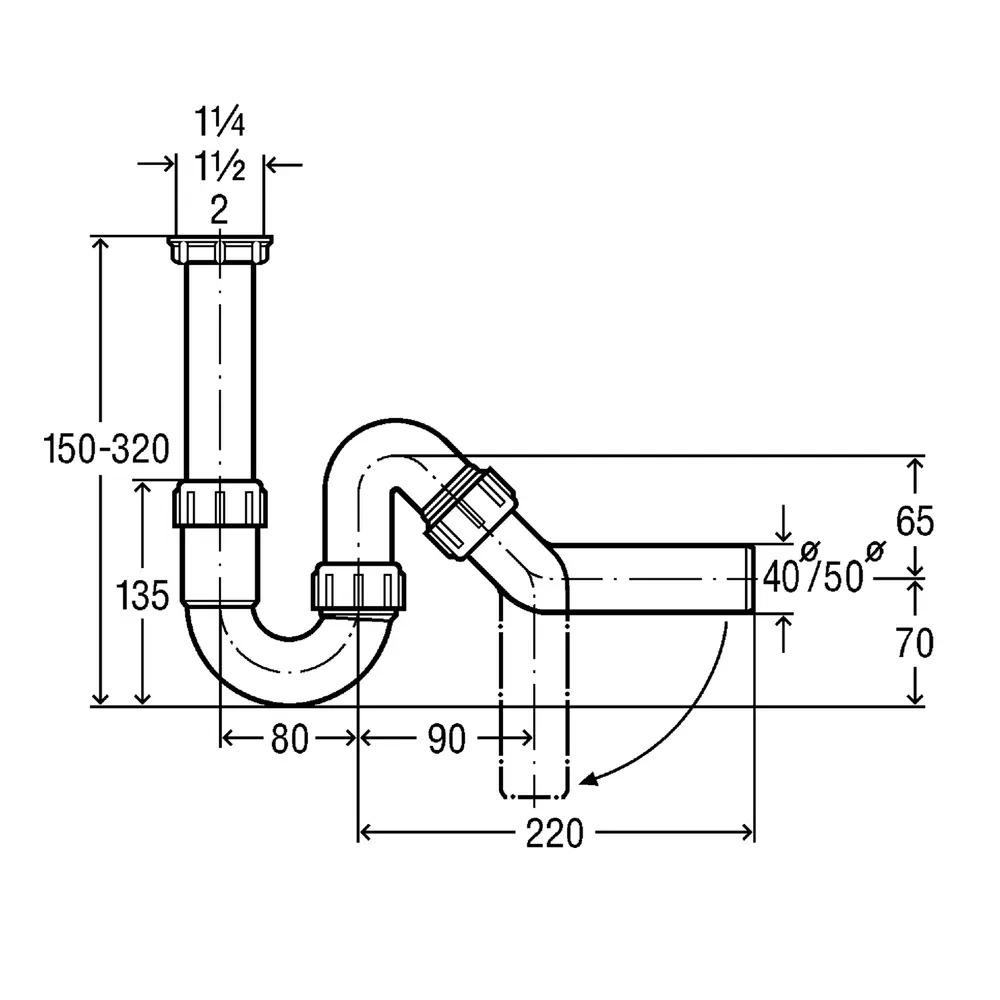 101800 Сифон VIEGA застосовується для підключення кухонних мийок, умивальників. Сифон забезпечений штуцером для підключення зливу пральної або посудомийної машини.