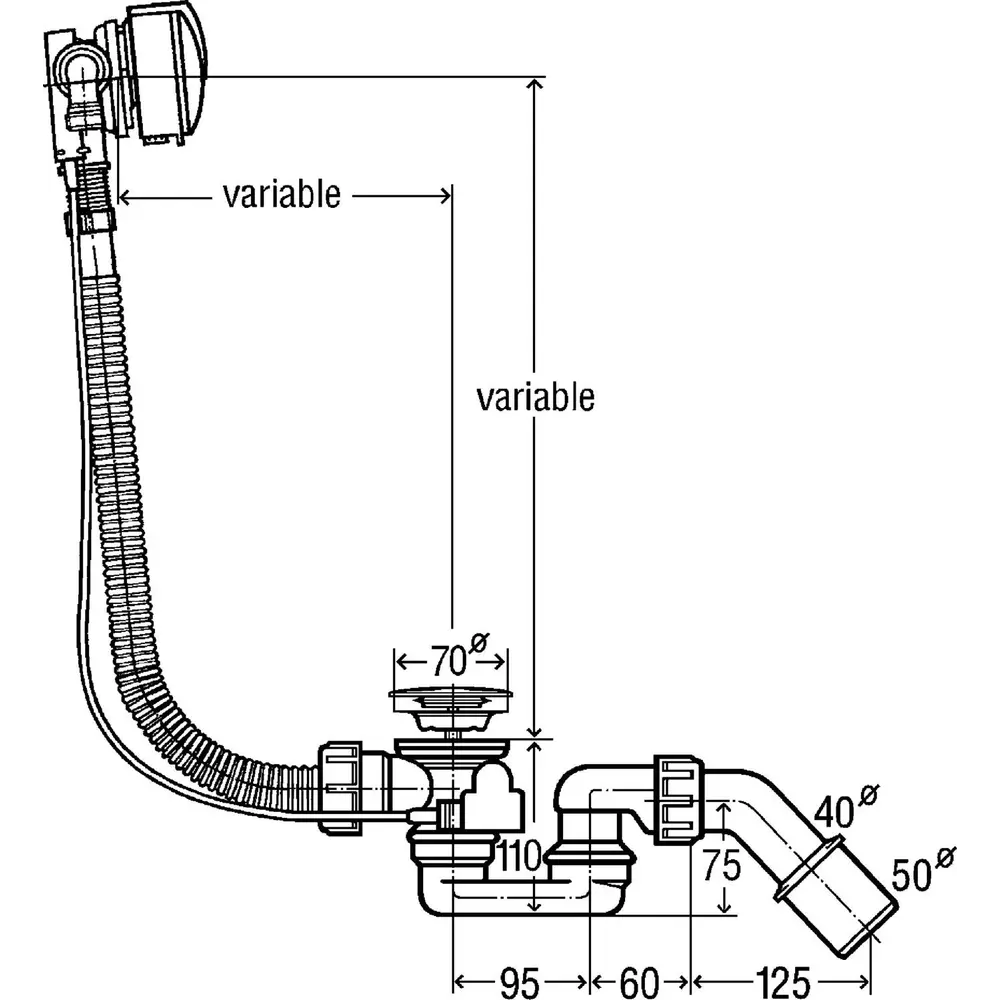 Сифон для ванни Simplex наповненя через перелив VIEGA 593186