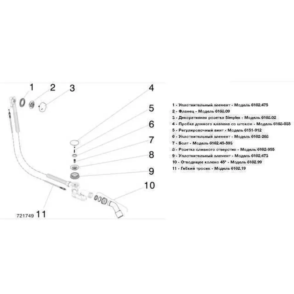 595678 Сифон Simplex ванна автомат (подовжений) VIEGA