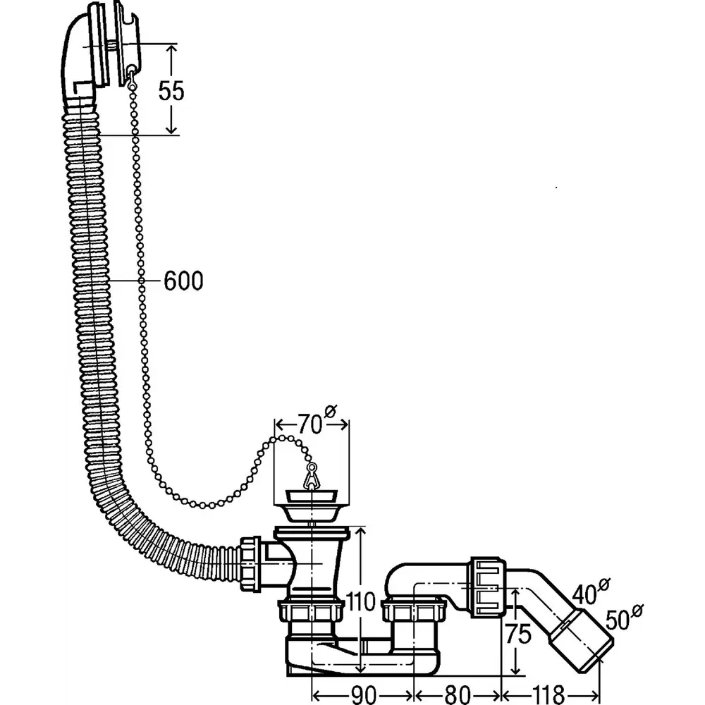 573973 (311537) Сифон для ванны пластиковый перелив-простой Simplex VIEGA