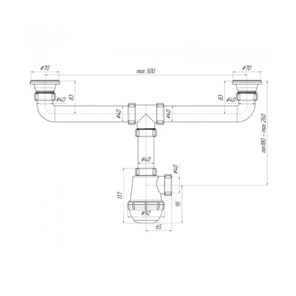 Сифон АНІ Пласт А3500 для кухні з подвійним відводом для пральної машини випуск 70 мм вихід 50мм