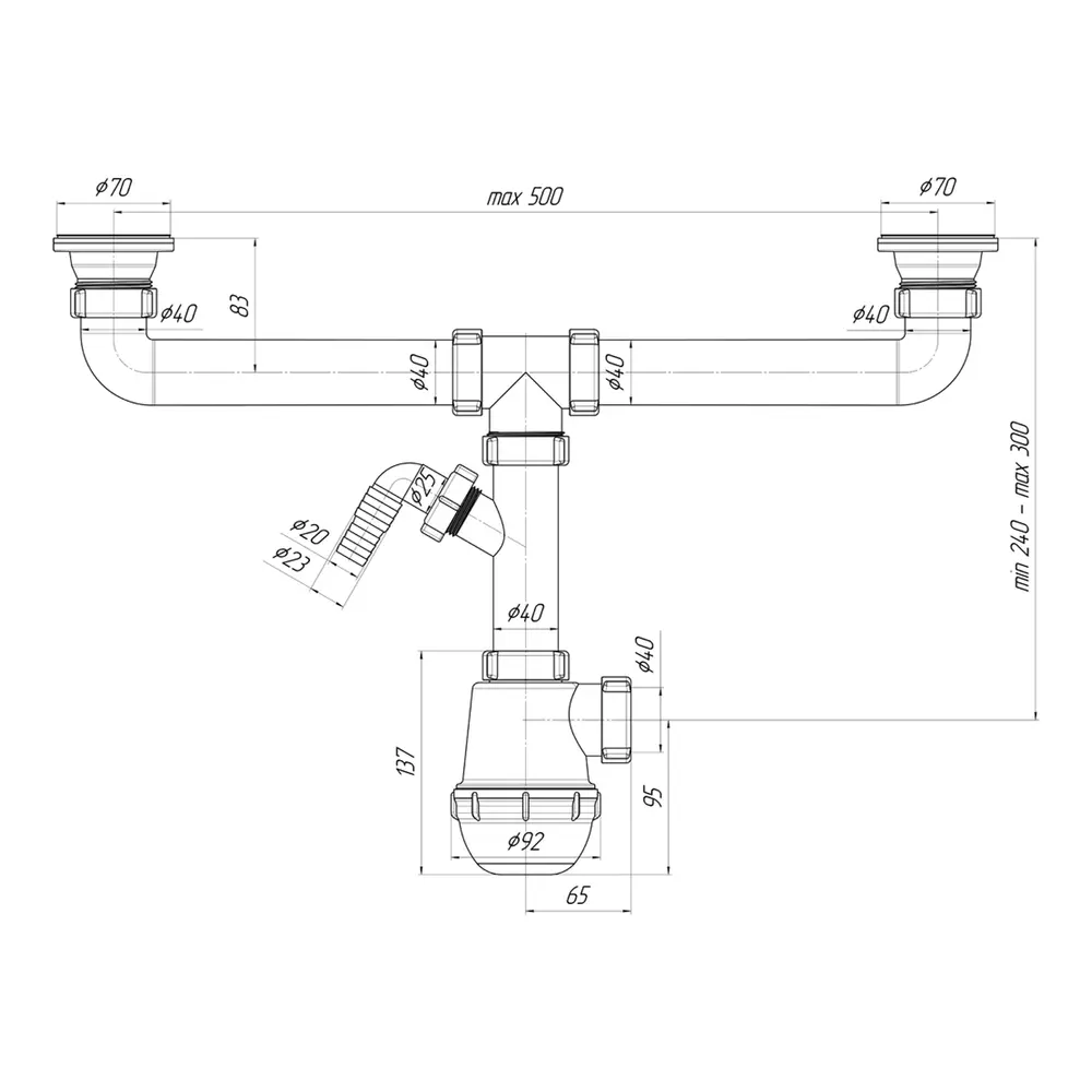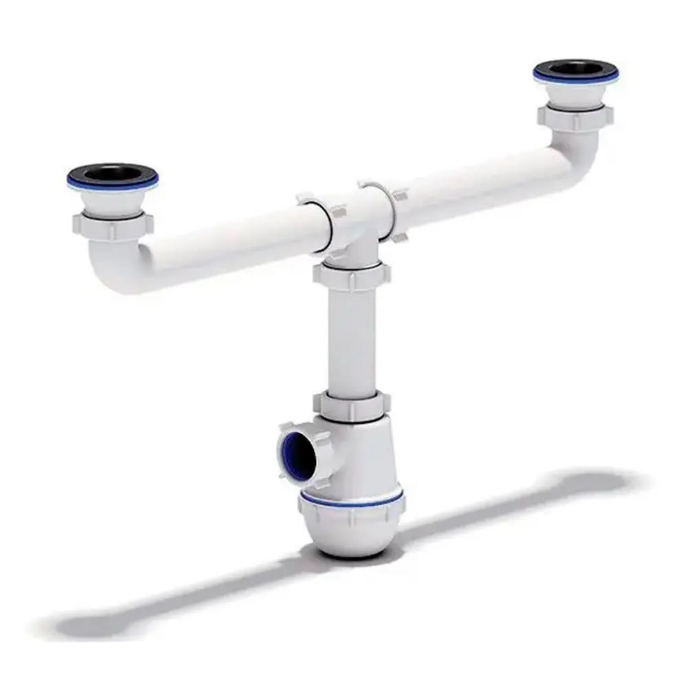 Сифон АНІ Пласт А3500 для кухні з подвійним відводом для пральної машини випуск 70 мм вихід 50мм