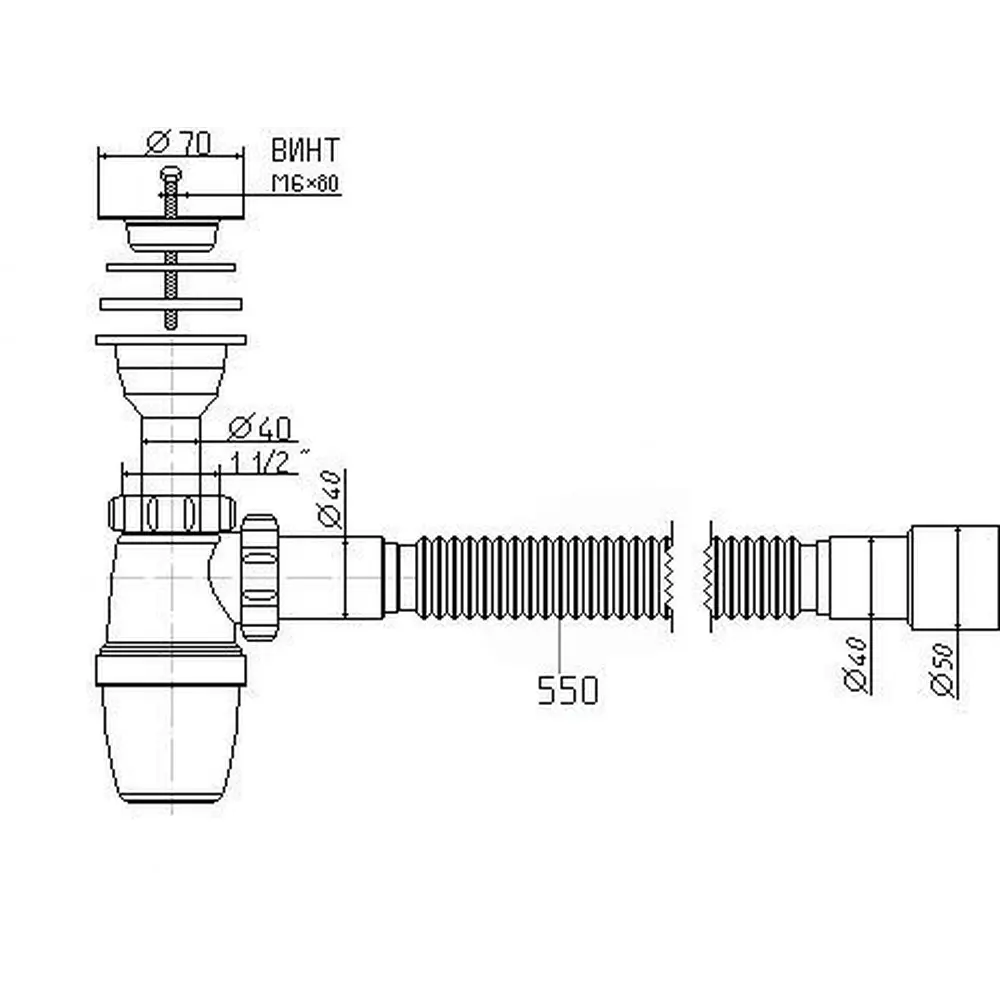 Сифон Waterstal (А - 32019)1 1/2 40/50 з гофрою під умивальник нерж болт 8см