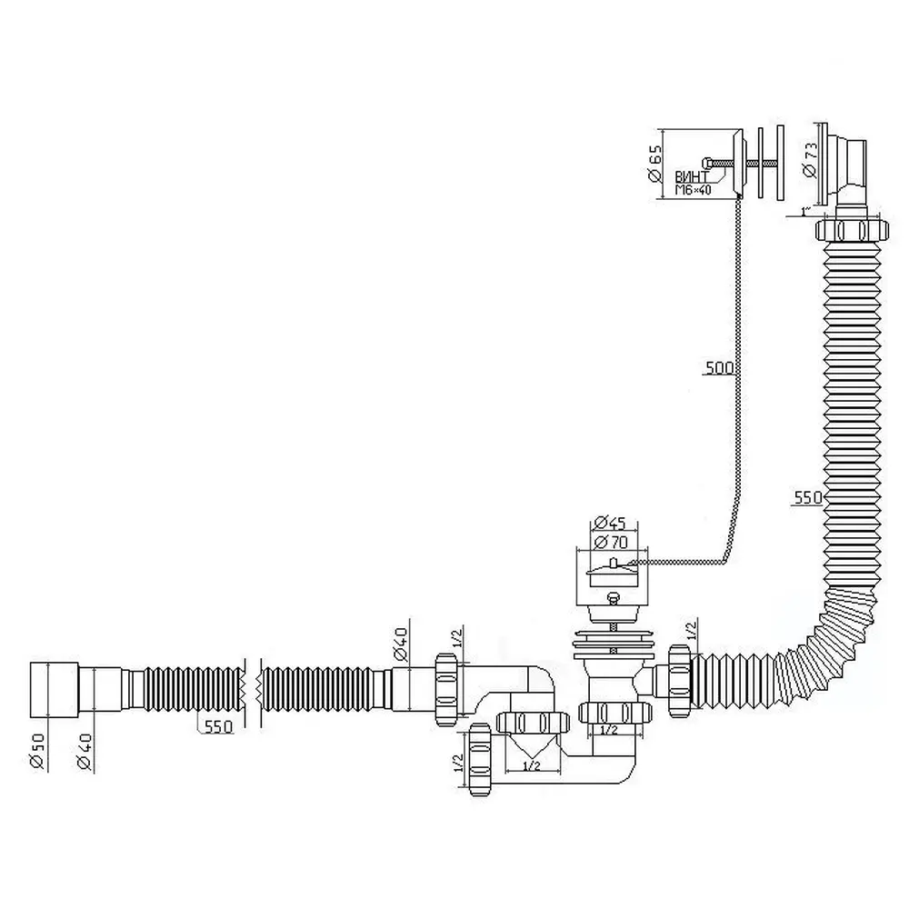 Сифон Waterstal (А - 80089) для ванны регульов.11 / 2 "40/50 с пер., С гибки. Труб.розбирна