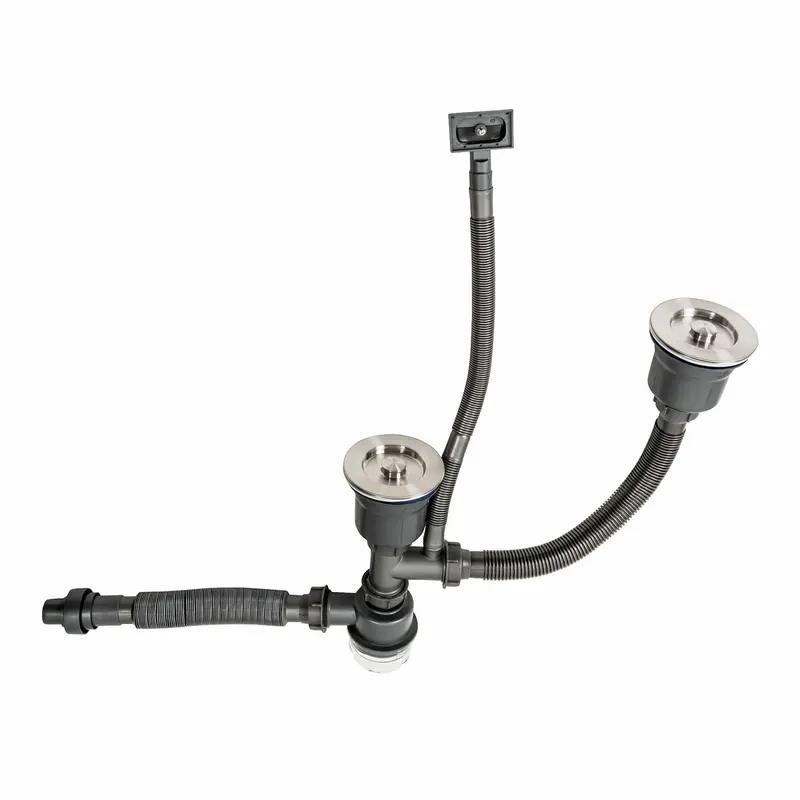 - Двойной или тройной – используется для моек с двумя или тремя чашами, обеспечивая равномерный отвод воды.