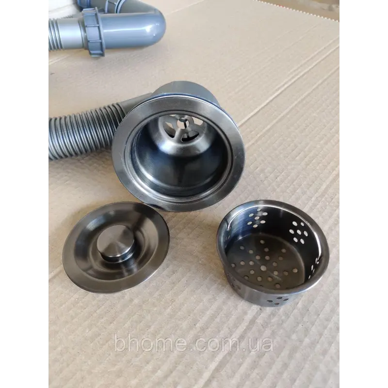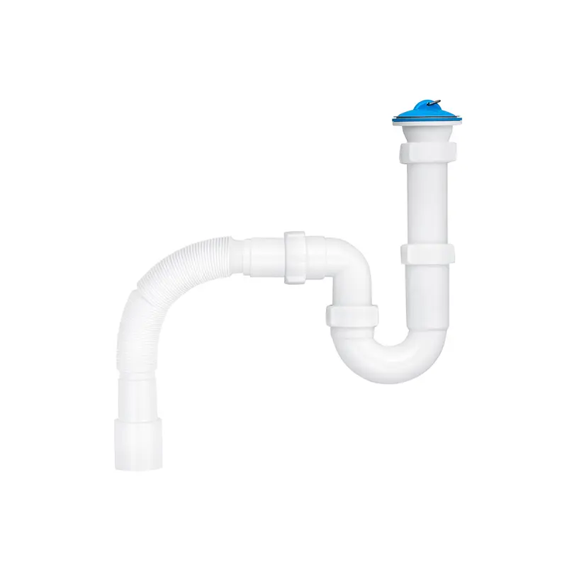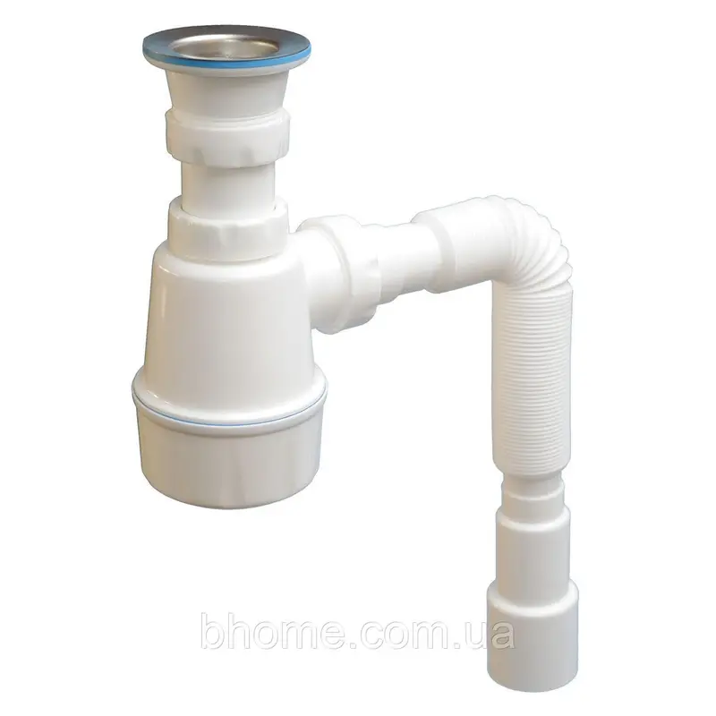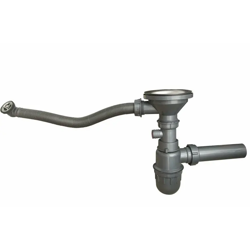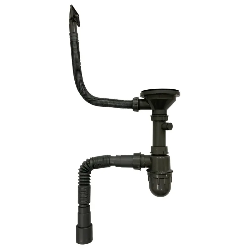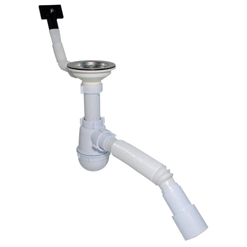Ідеально підійшов і до мийки і до виходу труби з каналізації. Все в сборі, нічого не докуповував. Поставив і забув.