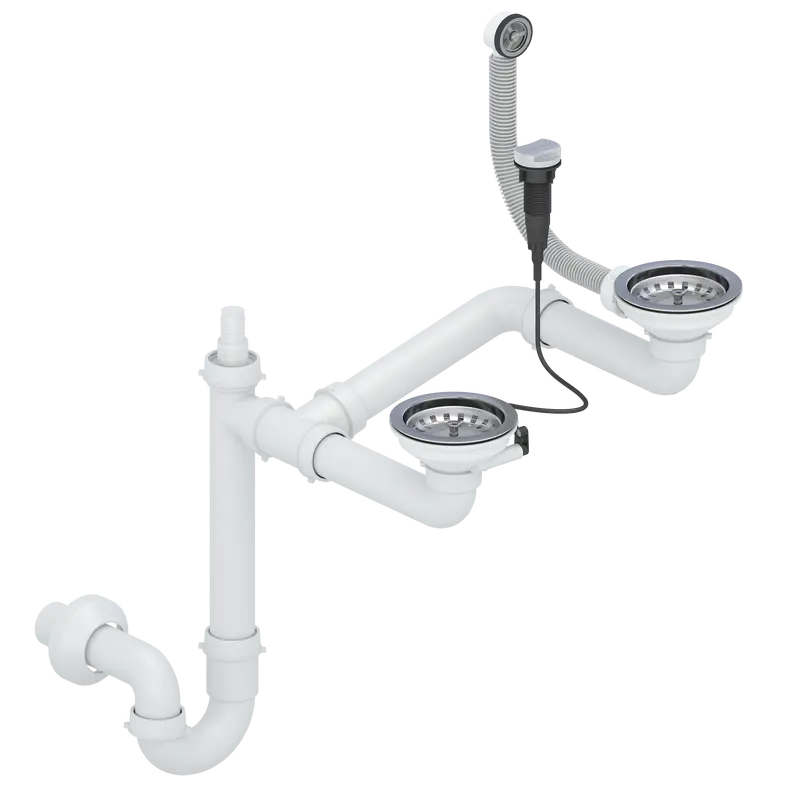 • Двойной или тройной – используется для моек с двумя или тремя чашами, обеспечивая равномерный отвод воды.