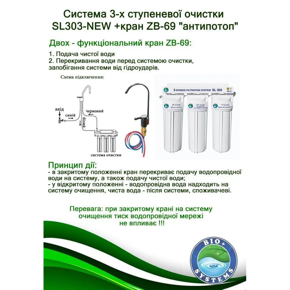 Система 3-х ступенчатого очистки Bio + systems SL303-NEW + кран ZB-69 "антипотоп"