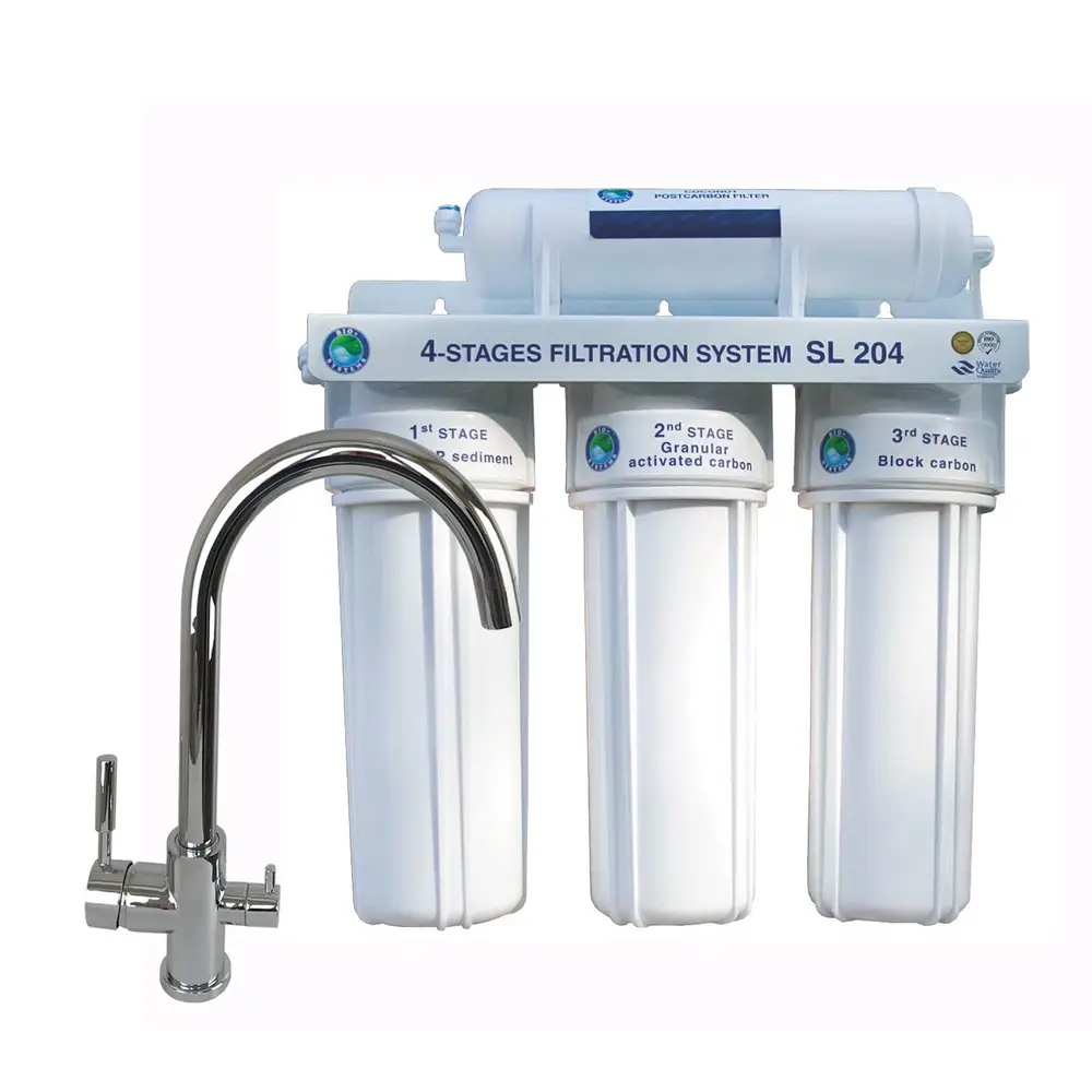 Система четырехступенчатой очистки воды ТМ «Bio + Systems» SL 204 эффективно очищает питьевую воду, поступающую из системы центрального водоснабжения от различных вредных для организма человека загрязнений и примесей: хлорорганических соединений, механических примесей.