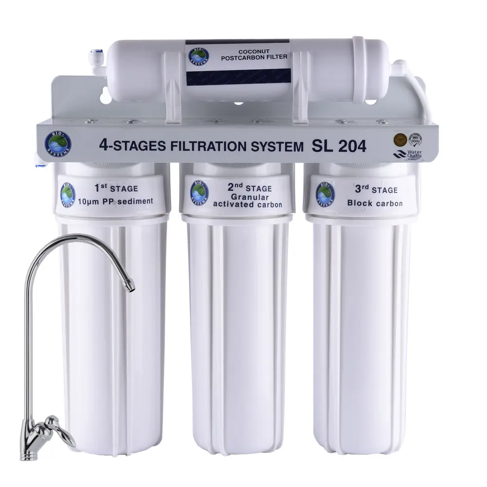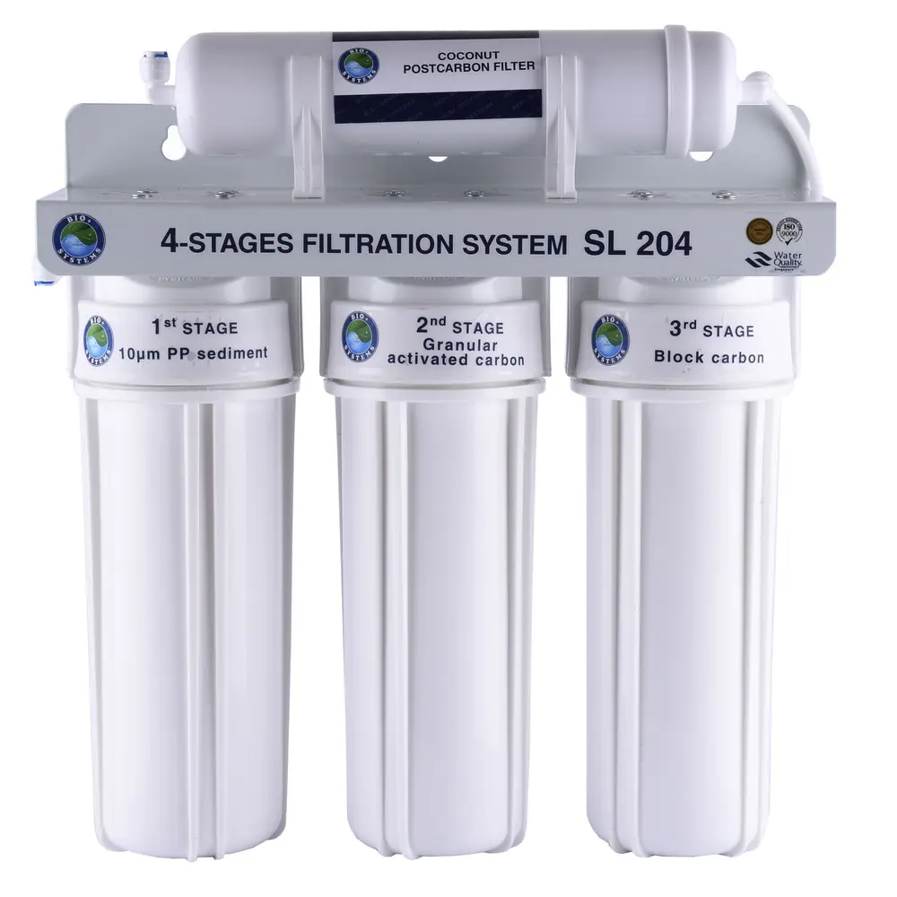 Система четырехступенчатой очистки воды ТМ «Bio + Systems» SL 204 эффективно очищает питьевую воду, поступающую из системы центрального водоснабжения от различных вредных для организма человека загрязнений и примесей: хлорорганических соединений, механических примесей.