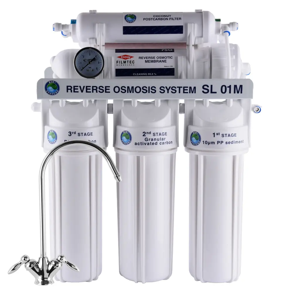 Система обратного осмоса Bio + systems (мембране. Filmtec пр-во США) без насоса + мин-р RO-75-SL01M + ПЛАСТ. бак