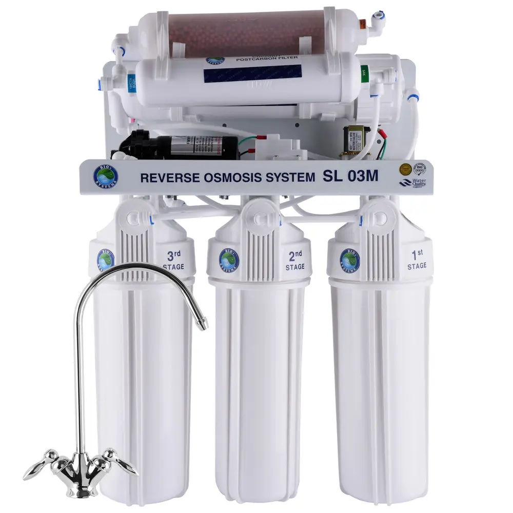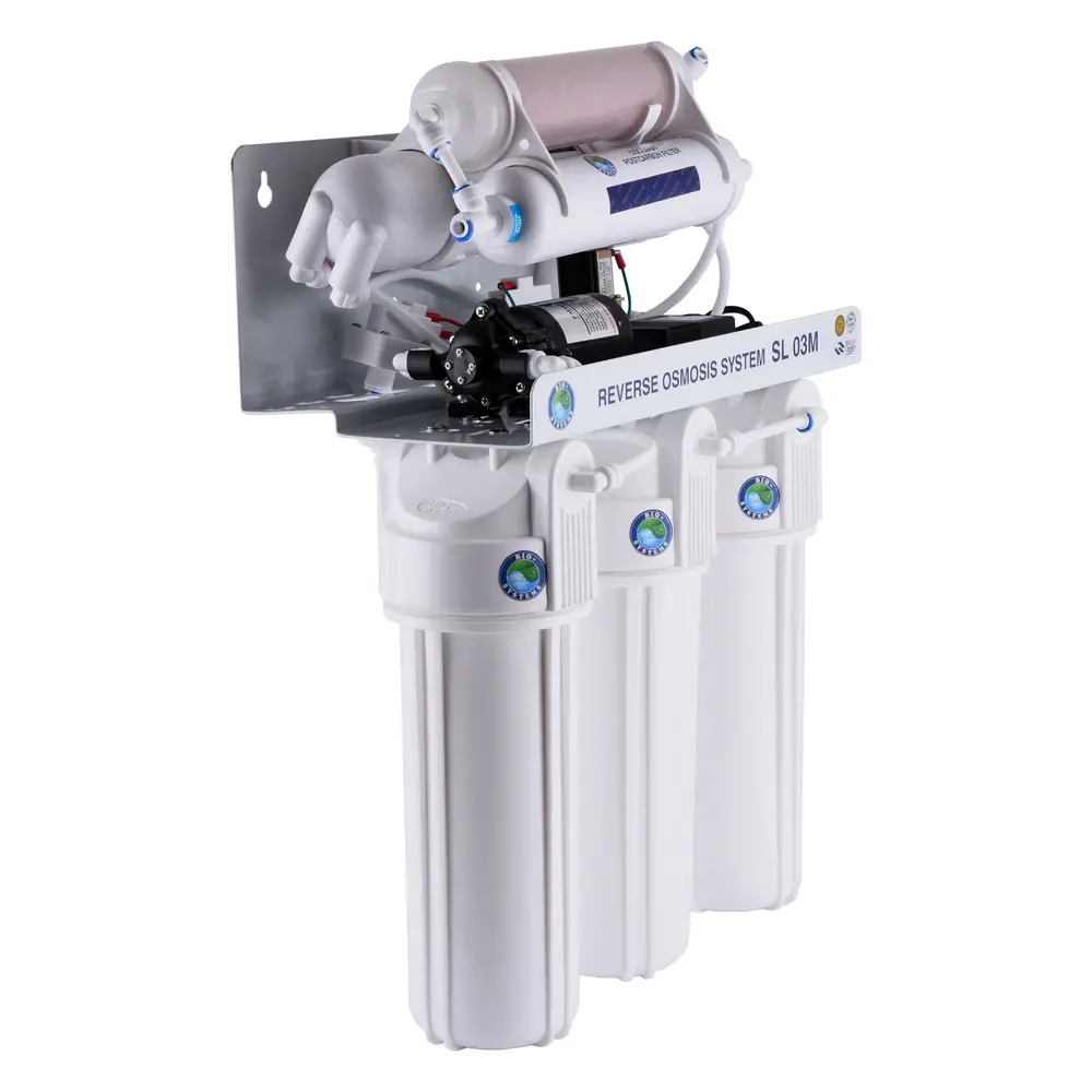 Система обратного осмоса Bio + systems (мембране. Filmtec пр-во США) с насосом + мин-р RO-75-SL03M + ПЛАСТ. бак