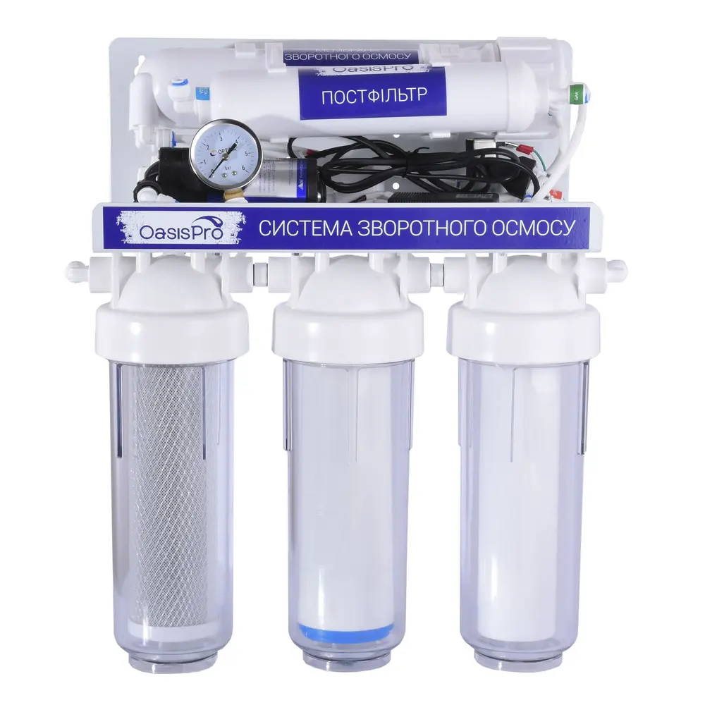 Картриджі попереднього очищення забезпечують більш тривалу роботу зворотноосмотичної мембрани, а пост-фільтр і мінералізатор покращують органолептичні і хімічні властивості води -відповідно. Даний метод очищення видаляє 99% містяться в воді шкідливих речовин.