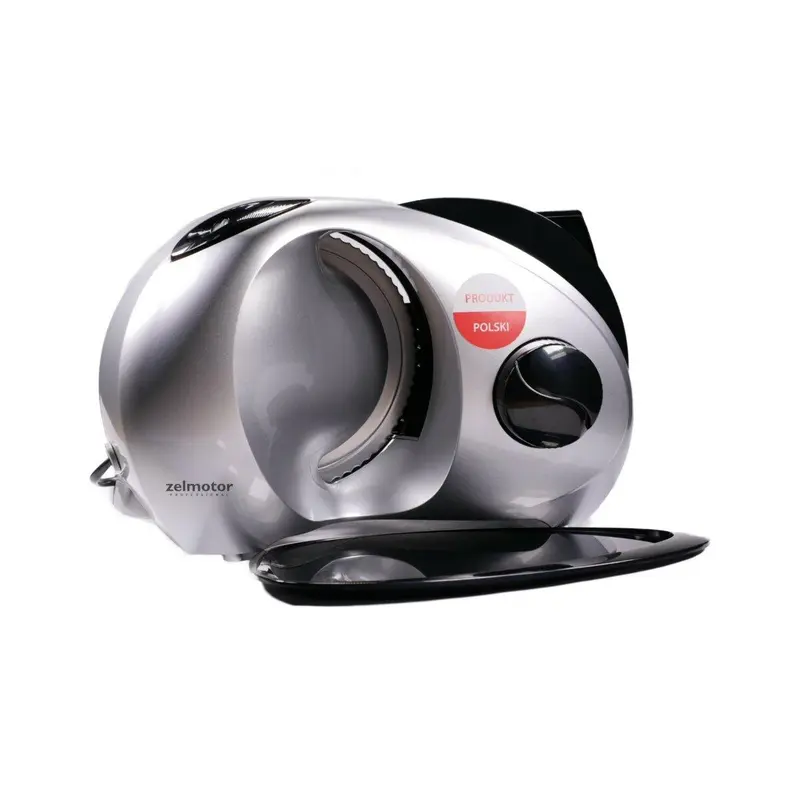 - Електричні слайсери – мають електродвигун, який приводить у рух ріжучий диск. Такі пристрої дозволяють швидко і рівномірно нарізати м’ясо, сир, ковбаси, рибу та інші продукти.