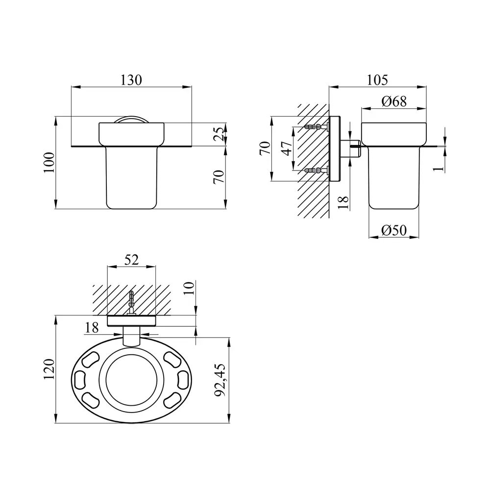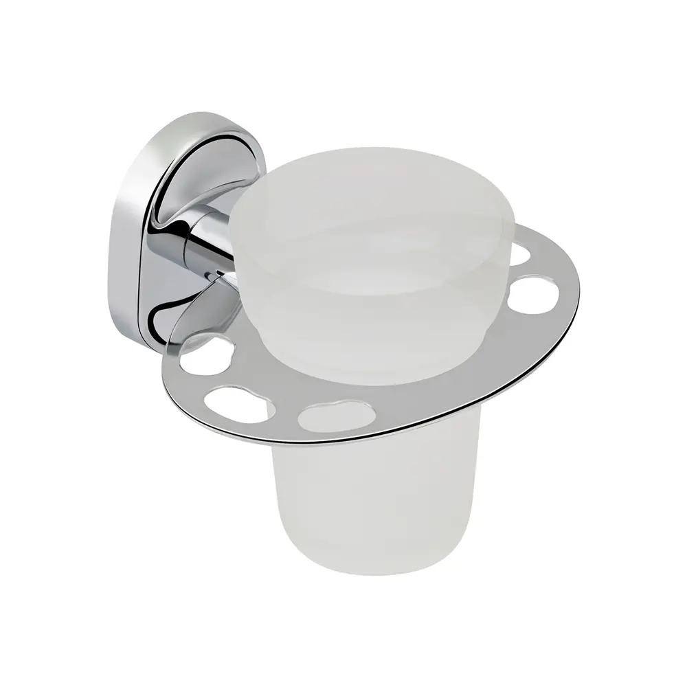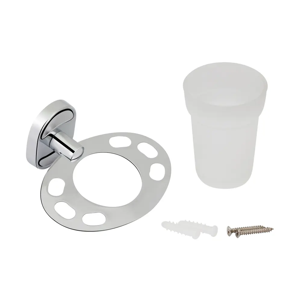 Настенный стакан Kroner KRM Elbe-ACG2906-1 для ванной комнаты состоит из стеклянного матового стакана и металлического держателя. Диаметр стакана 61 мм, крепится на стене на нужной высоте, он съёмный и легко моется. Поверхность вокруг стакана имеет отверстия для зубных щеток. Скрытое крепление позволяет сохранить отделку, а хромированное покрытие предотвратит образование коррозии и грязи.
