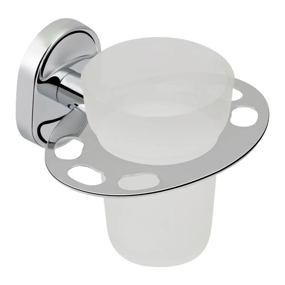 Склянка з матового скла Lidz (CRG) 114.04.03 включає в себе матову склянку і металевий утримувач з декоративними вставками, який кріпиться на стіні на необхідній висоті. Приховане кріплення дозволяє зберегти обробку ванної кімнати, а хромоване покриття запобіжить утворенню корозії і бруду. Навколо склянки виконана поверхня з отворами для зубних щіток.