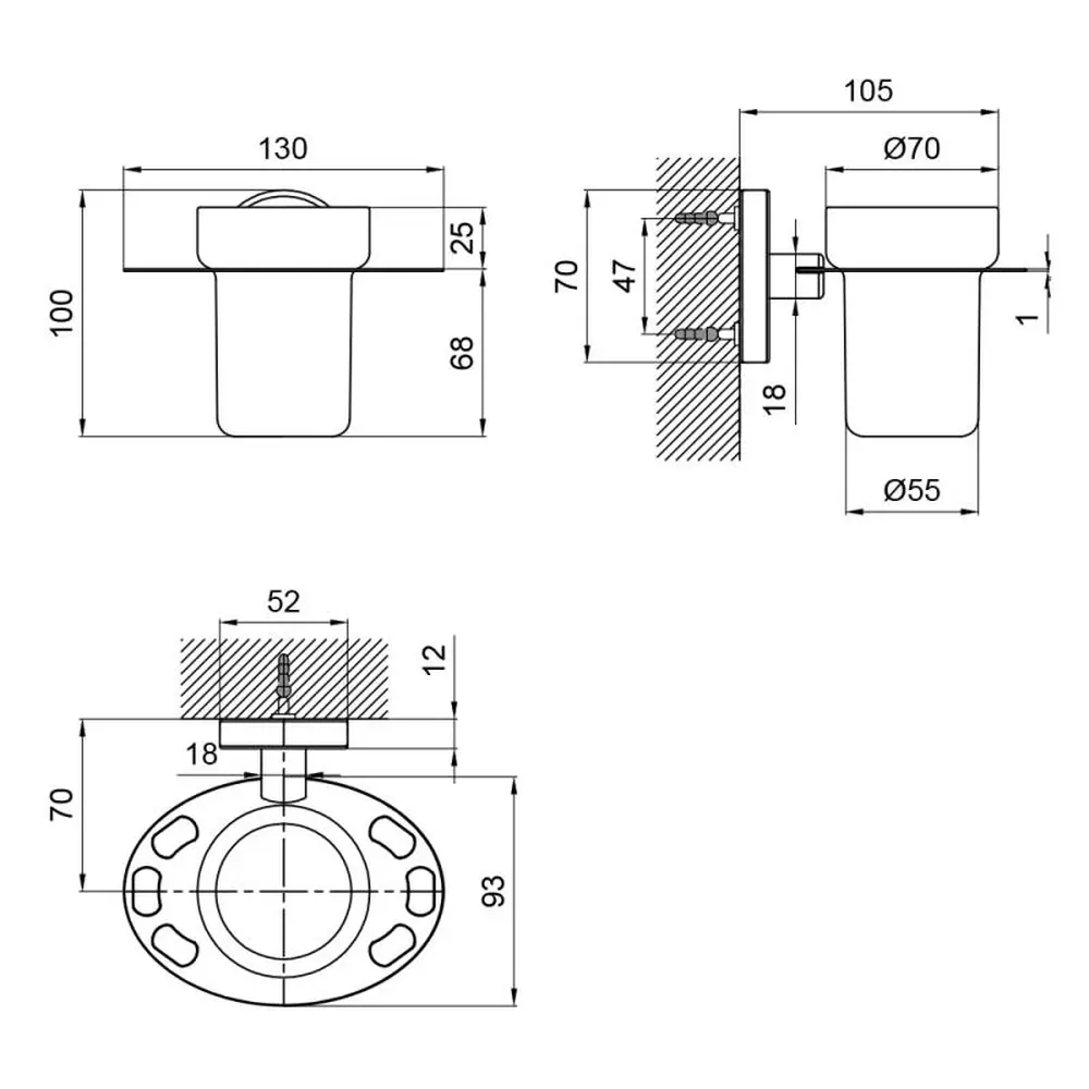Склянка з тримачем, кріпильні деталі (дюбель-цвях - 2 шт.).
