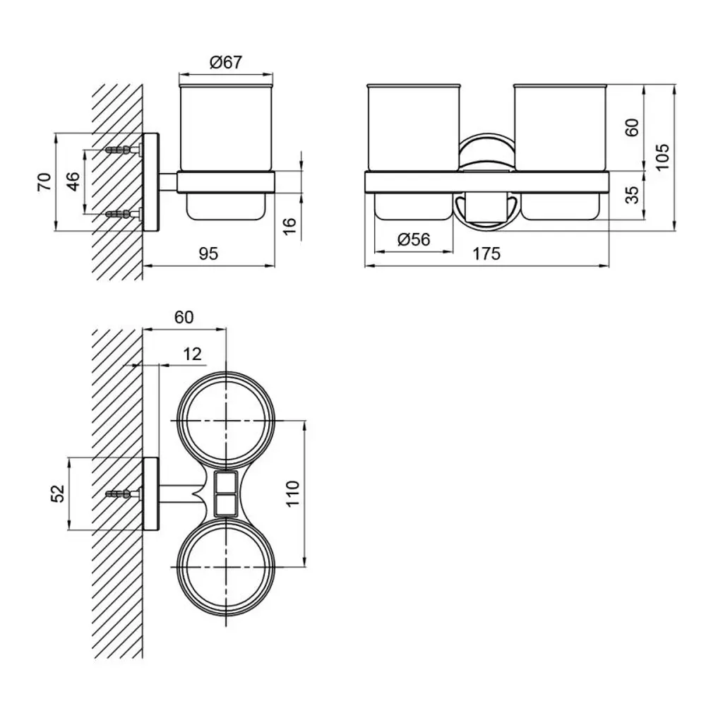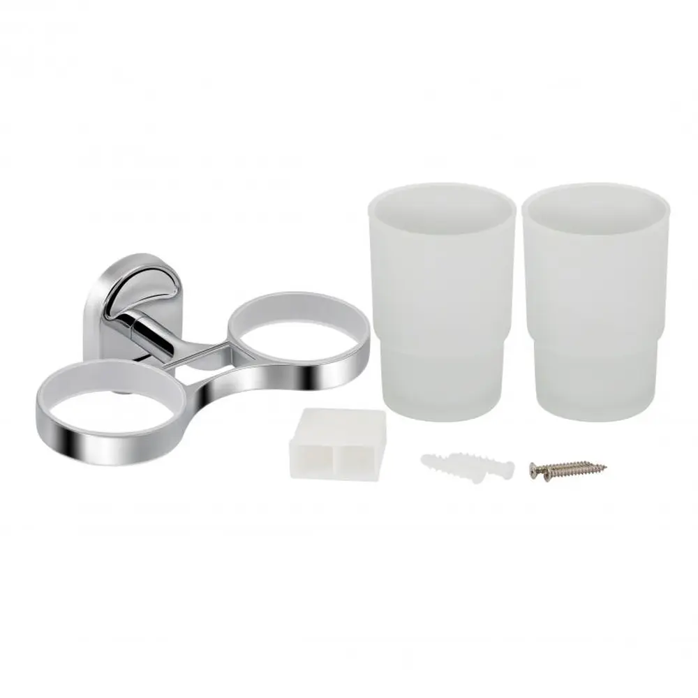 Подвійна склянка Lidz (CRG) 114.04.02 знімна, завдяки чому догляд за нею буде простим і легким. У комплект входять дві скляних матових склянки і хромований глянцевий утримувач. У виробі використовуються кільця ущільнювачів (прокладки), необхідні для щільного з‘єднання, також перешкоджають виникненню шуму в результаті зіткнення частин вироби. Тримач виконаний з двома отворами для зубних щіток.