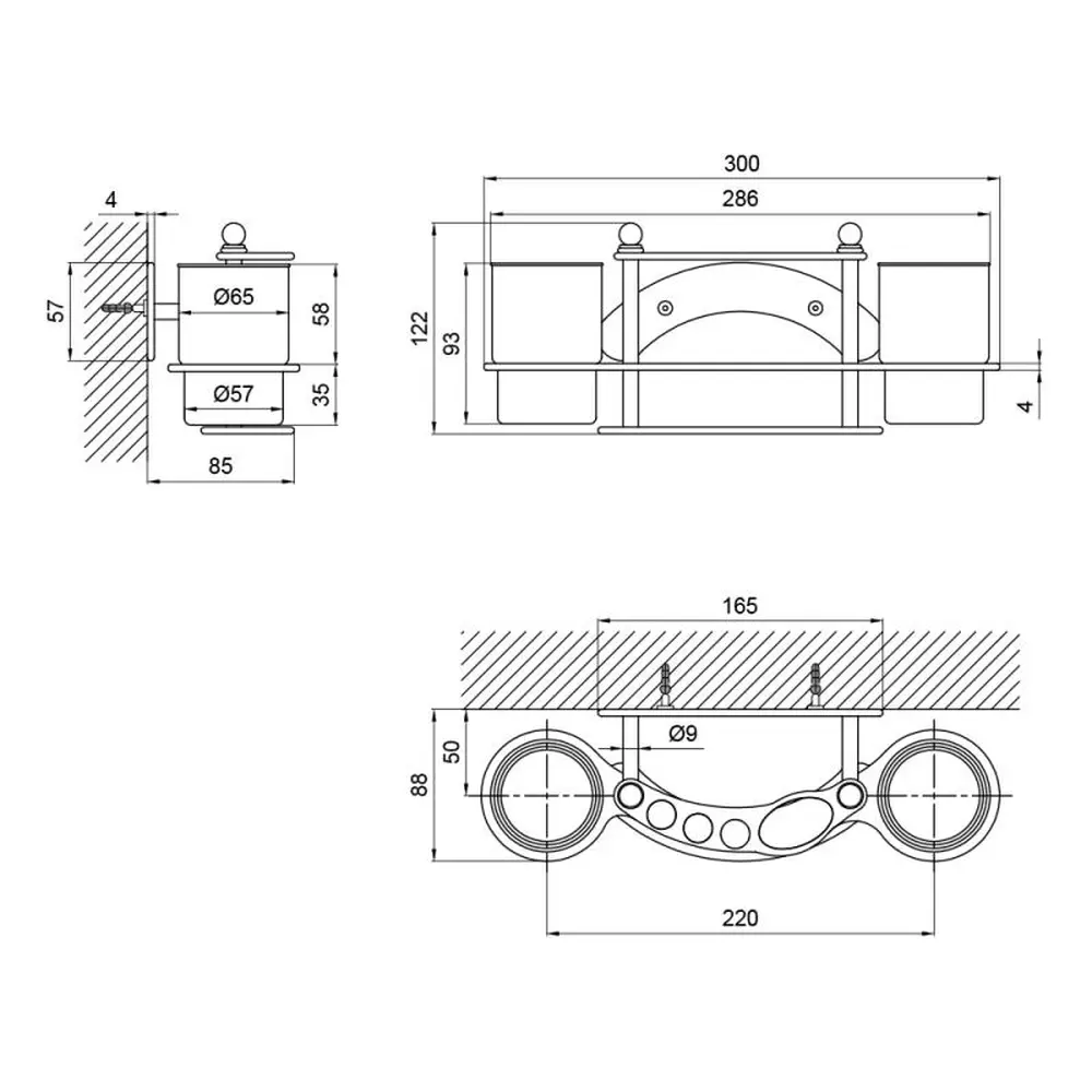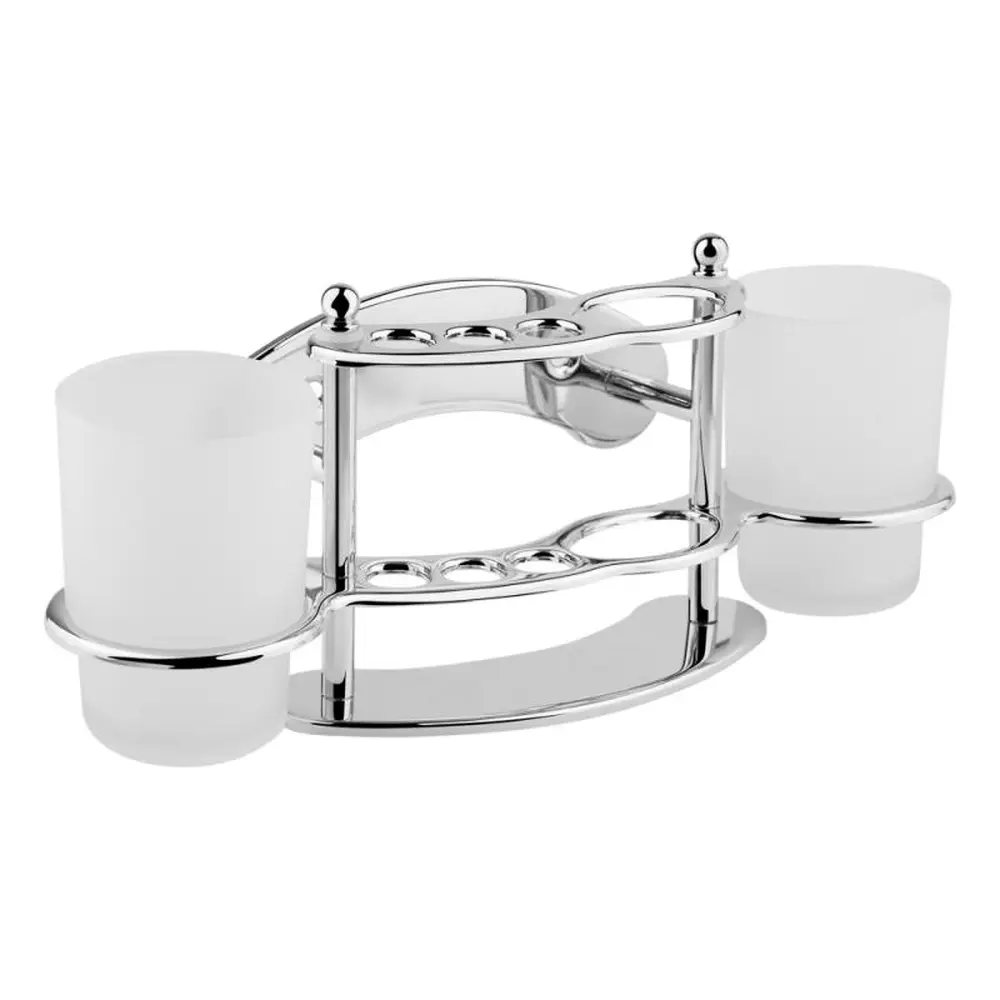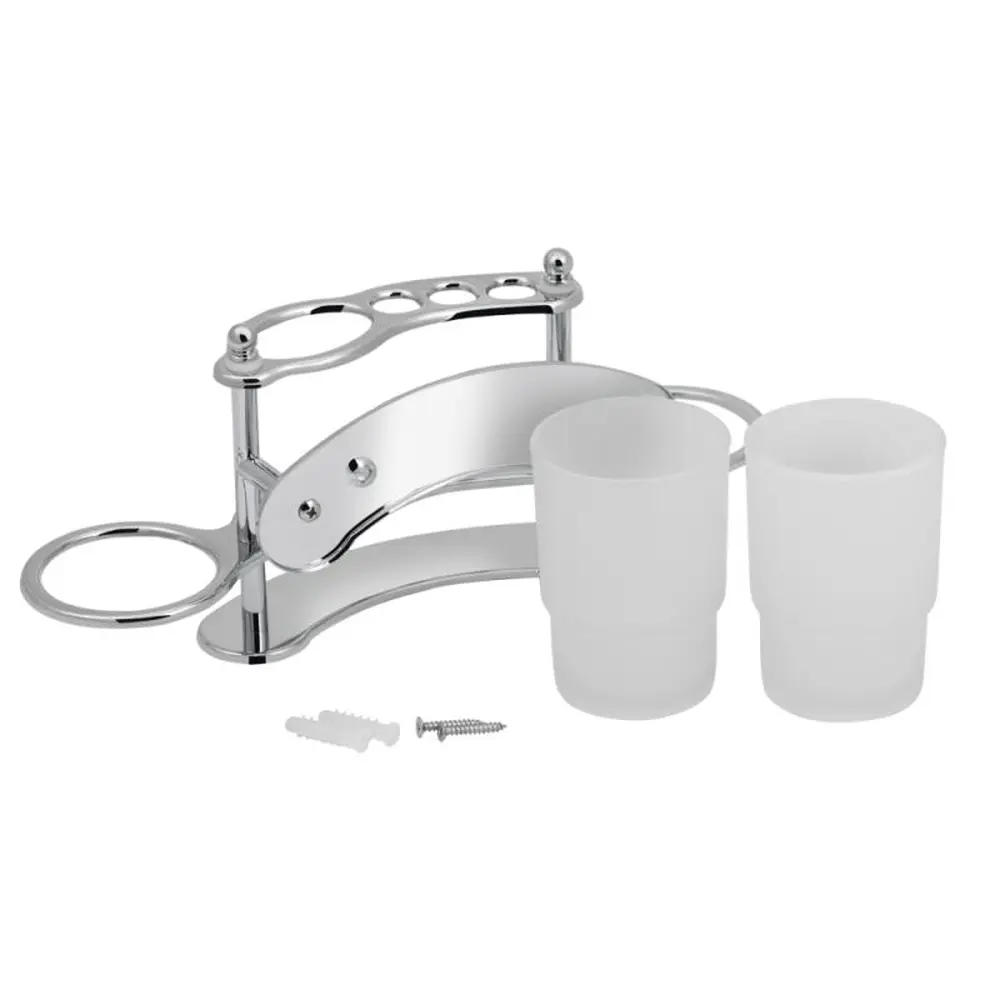 Тримач Lidz (CRM) 114.08.11 складається з двох матових склянок, тримача трьох зубних щіток та однієї зубної пасти. Тримач - двох‘ярусний, тому зубні щітки та паста будуть зафіксовані. Хромоване покриття запобіжить утворенню корозії та бруду.