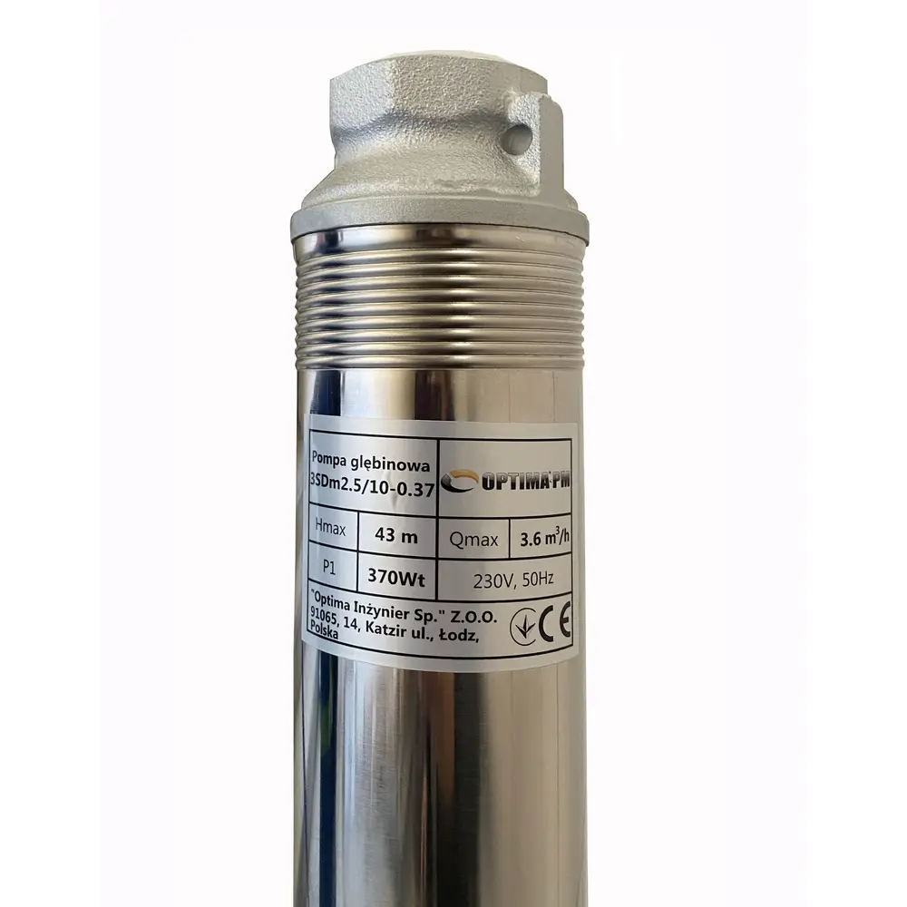 Насос OPTIMA PM 3SDm2.5 / 10 0.37 кВт 46м складається з двох частин: двигун в нижній частині і насос у верхній частині, жорстко зєднані між собою зубчастої муфтою міжнародного стандарту Nema і має забір води в середній частині корпусу. Насос относятітся до насосів відцентрового типу і має багатоступеневу конструкцію і «плаваючі» робочі колеса, завдяки яким реалізується підвищена стійкість до піску (до 1000 г / м3).
