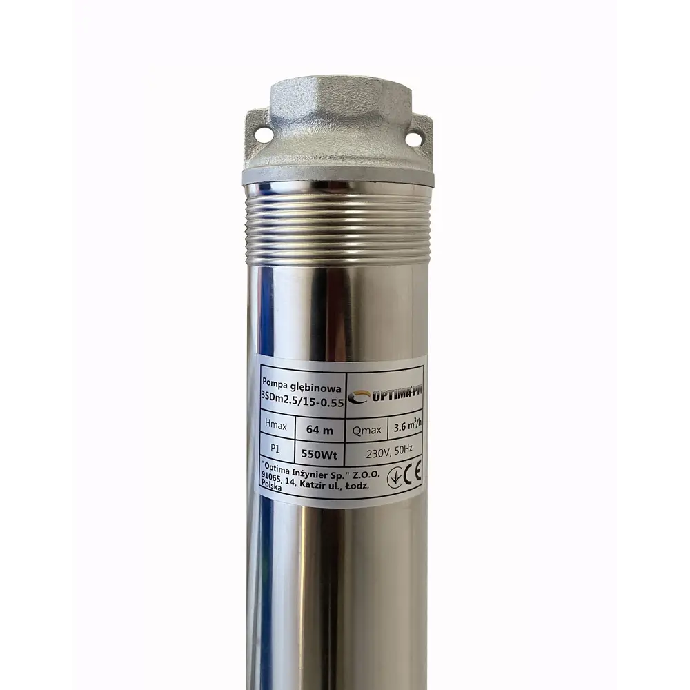 Насос свердловинний з підвищеною стійкістю до піску OPTIMA PM 3SDm2.5 / 15 0.55 кВт 65м діаметром 3 "призначений для подачі води з свердловин (діаметром від 3" або 76 мм) і відкритих водойм з глибиною більше ніж 9 м, коли використання поверхневого насоса неможливо або недоцільно.