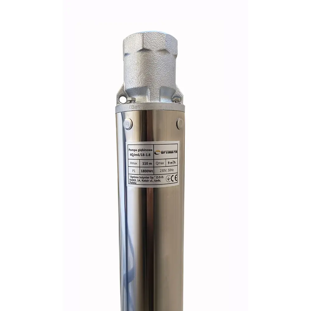 Насос свердловинний з підвищеною стійкістю до піску OPTIMA PM 4QJm6 / 18 1.8 кВт 110м діаметром 4 "призначений для подачі води з свердловин (діаметром від 4" або 101 мм) і відкритих водойм з глибиною більше ніж 9 м, коли використання поверхневого насоса неможливо або недоцільно .