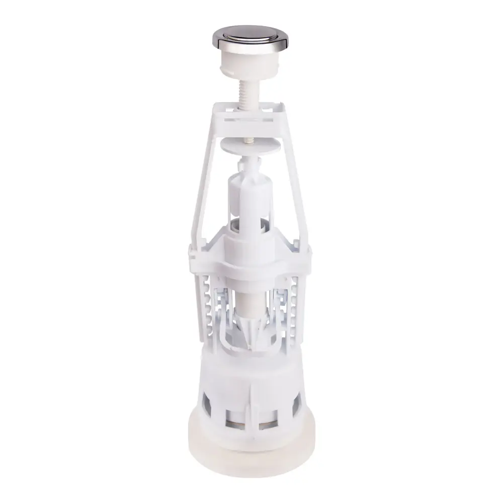 Зливний механізм для унітаза Krono Plast КС1 KROKS1 виконаний з пластику з хромованою круглою кнопкою для увімкнення спускного механізму. Він монтується в бачок унітаза, що дозволить організувати процес змиву. Наявність переливу захистить вас від поломки впускного клапана та спустить надлишок води в каналізаційну трубу.